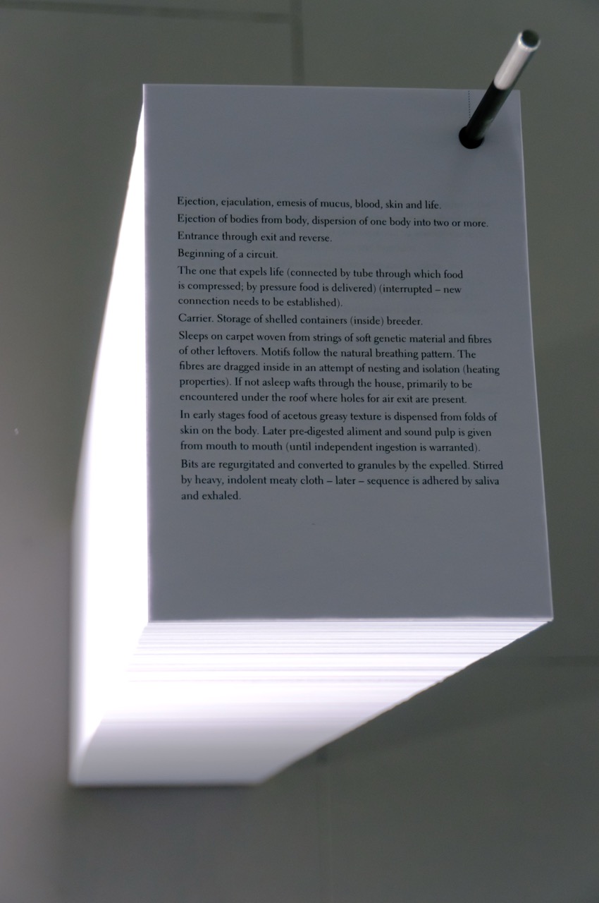 ongoing work cycle: installation, video, readings, performance, costume, publications
