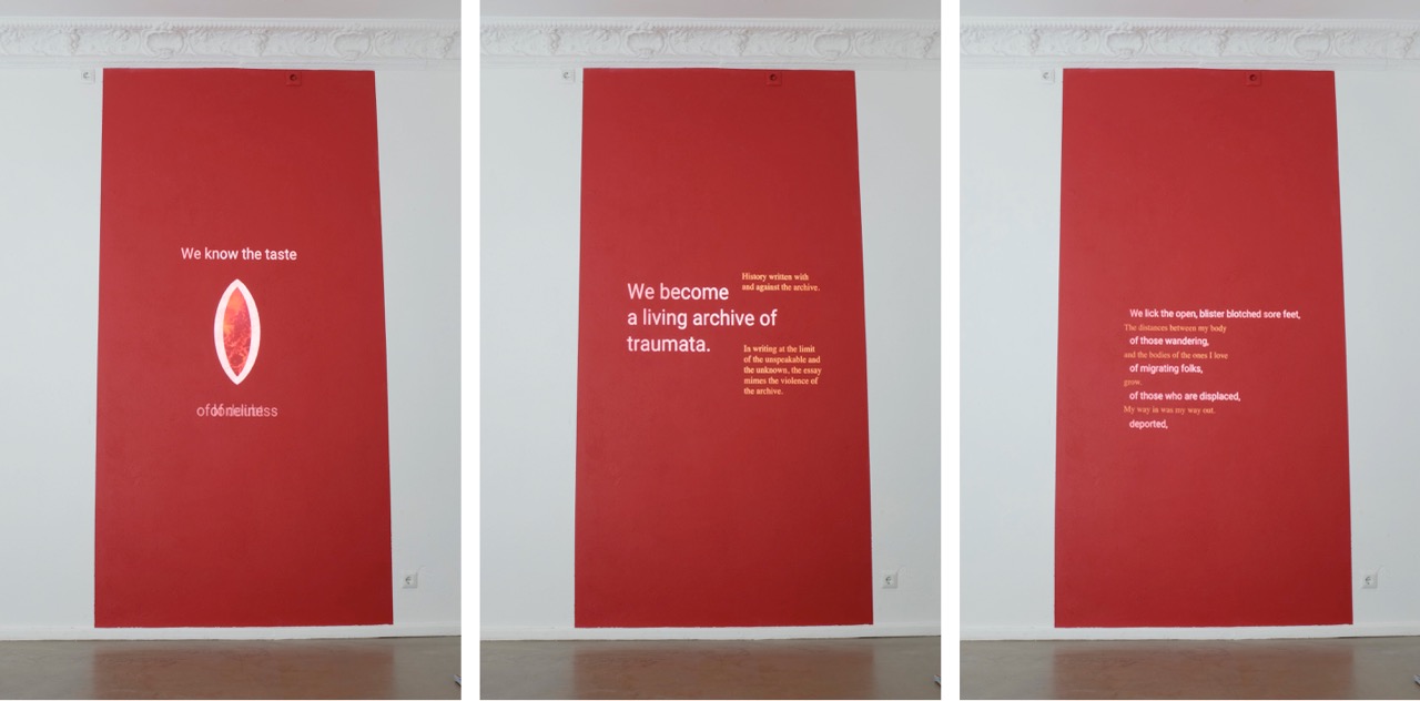 ‘Watzizizezitsch. Rebisch, Zwog. Über Sprachen und Stimmen’, reading performance and Installation, Kunstraum D21 (Leipzig, 2020) ‘iilwimi lipsing’, reading performance and installation for Paperworks Magazine, Peer Gallery (London, 2018)