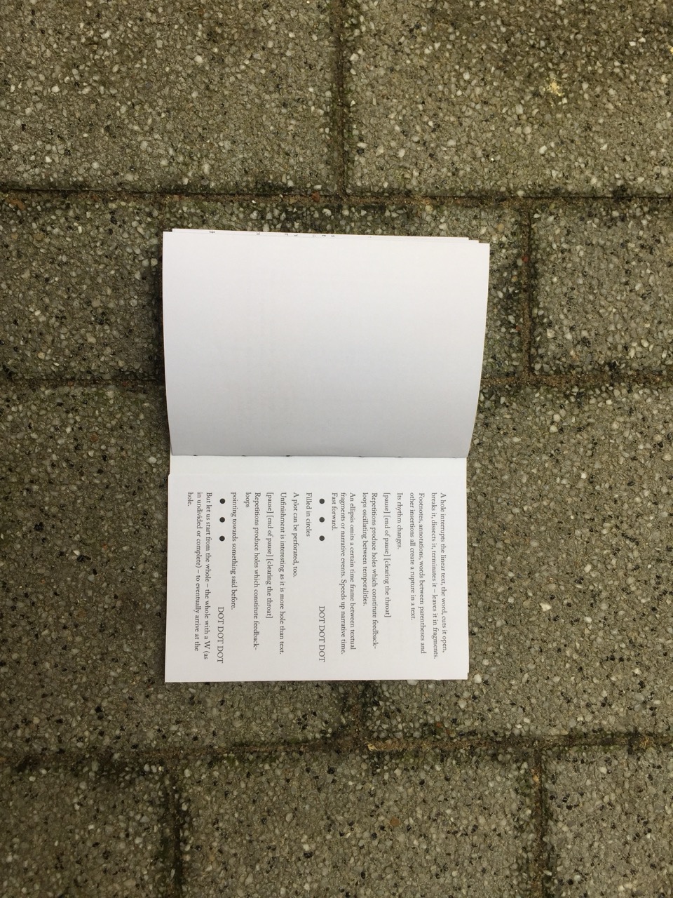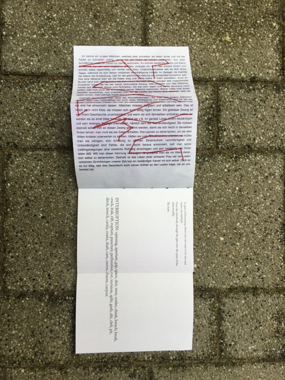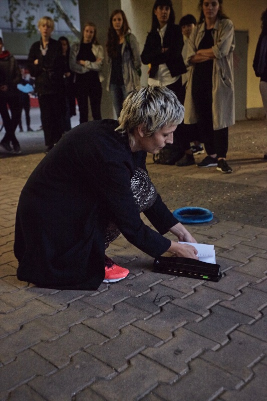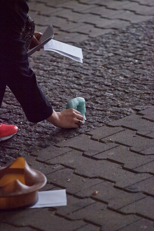 ‘Whenever the Heart Skips a Beat’, curated by Gislind Köhler and Marenka Krasomil, reading performance with props, and publication, Mehringplatz (Berlin, 2017)